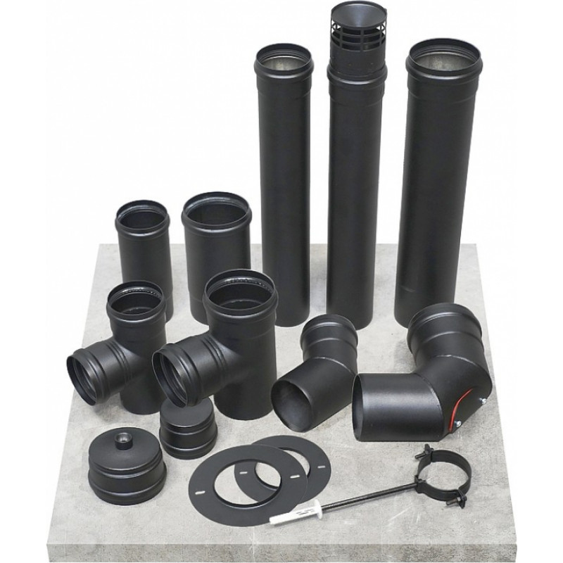 Almeva PL melnā tērauda dūmvadu sistēma piemērota granulu kamīnu (kamīnu, katlu) dūmgāzu izvadei piespiedu vilkmes rezultātā