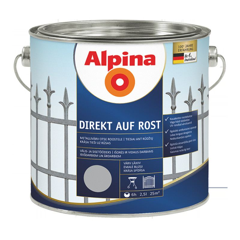 Aizsargkrāsa metālam Alpina Direkt auf Rost Spīdīga Zaļa (RAL6005) 2.5L: