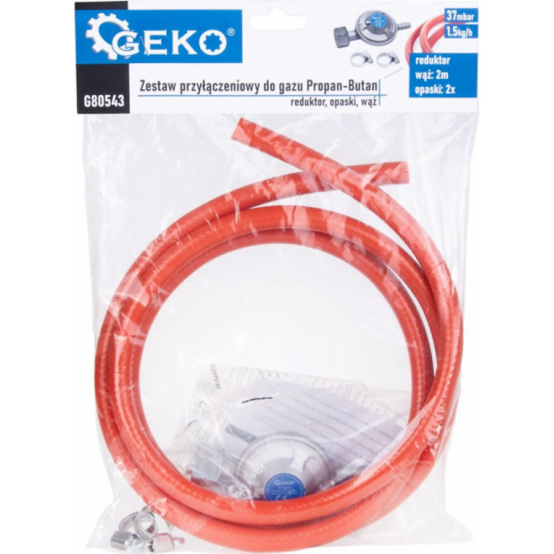Geko Propāna-butāna gāzes savienojuma komplekts, Geko, G80543, regulators, 2m šļūtene, 37 mbar spiediens