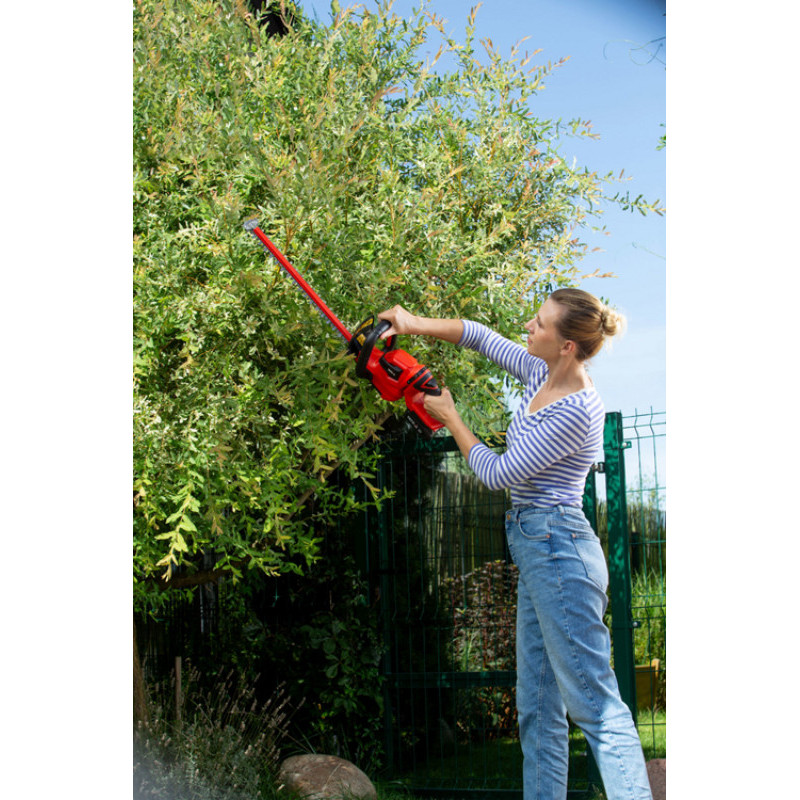 Akumulatora dzīvžogu šķēres apvieno spēku, mobilitāti un vieglu manevrētspēju. Lāzergriezts asmens no 18" garuma.
