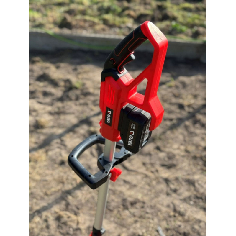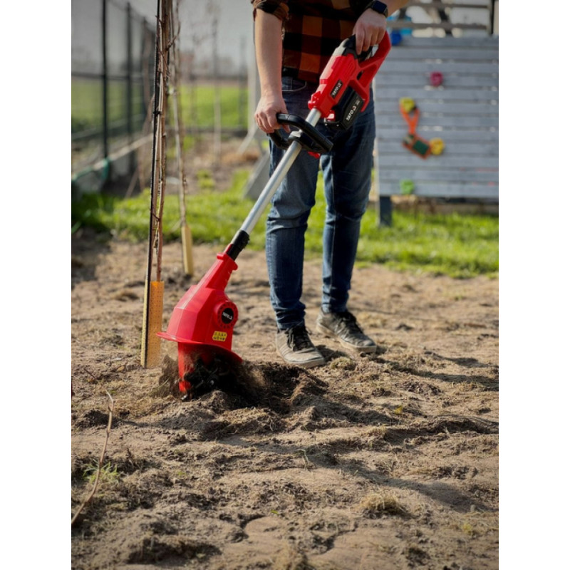 Akumulatora zemes frezētājs, kas paredzēts zemes atslāņošanai un apstrādei dārzos un dārzkopības zemēs. Pateicoties kompaktajiem izmēriem, ir iespējams precīzi strādāt tuvumā esošajām audzēm. Teleskopiskā rokturis atvieglo transportēšanu un uzglabāšanu. Ierīce tiek barota ar akumulatoru, kas ir kopīgs YATO 18 V elektrisko instrumentu sērijai.