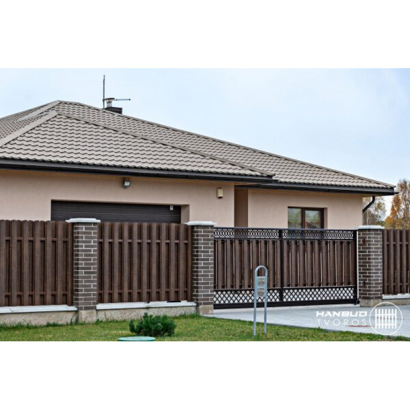 Variants Nr. 1:2 cm atstarpe starp žoga dēļiem. Nepieciešami 7 žoga dēļi uz 1m žoga.