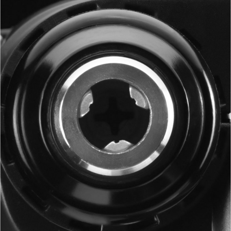 Aksesuāri ir droši nostiprināti metāla bezatslēgu patronā, kuras diametrs ir 13 mm. Tas ietaupa laiku, bieži mainot uzgaļus. Patrona ir aprīkota ar slēdzeni un atkārtoti pievelkamu mehānismu - jūs varat viegli un droši nostiprināt instrumentus pat ar apaļu kātu.
