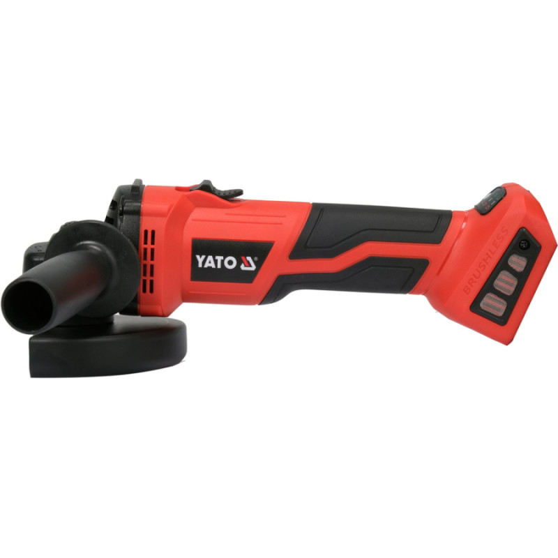 - Komplekta saturs: leņķa slīpmašīna (YT-828293), papildu rokturis, abrazīvā diska vāciņš, atslēga abrazīvā diska stiprināšanai, akumulators (YT-82844)