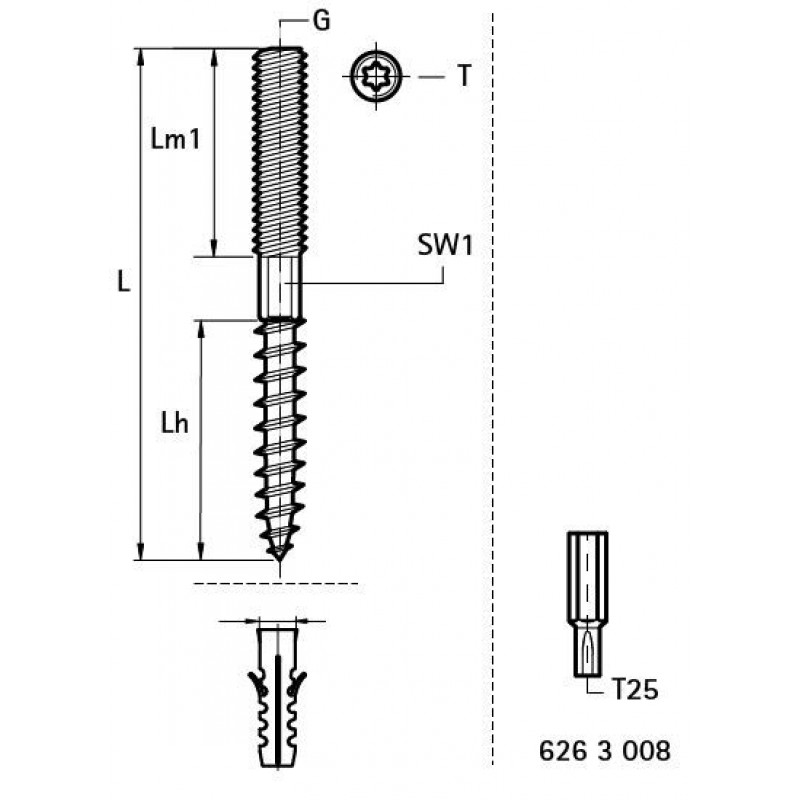 Kokskrūve-bultskrūve ar seškanti pa vidu precīzai regulacijai un Tork pievilkšanu.