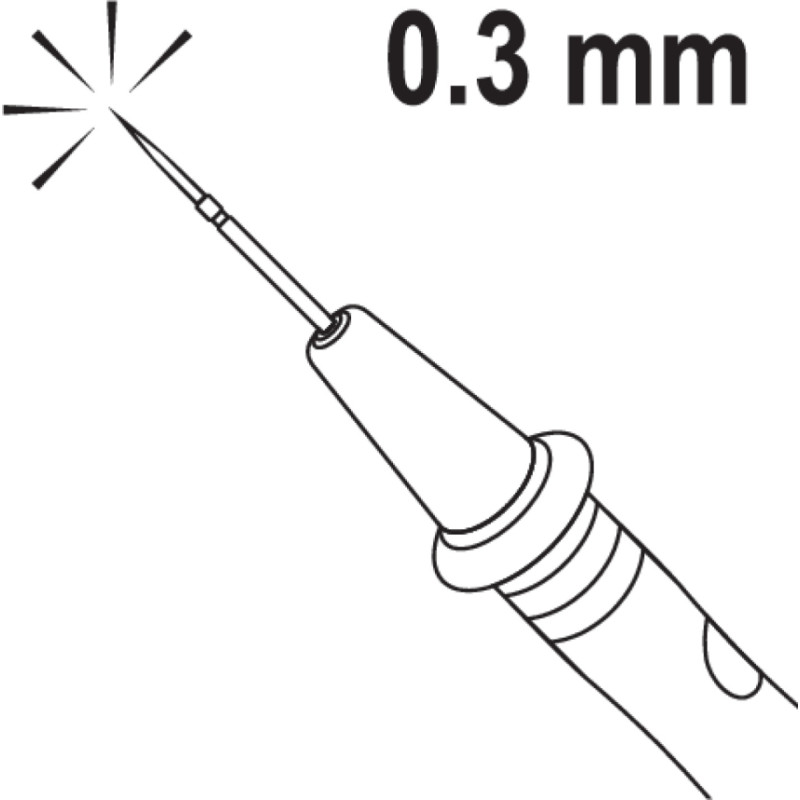 Mērīšanas zondes ar asām vara ar sudraba pārklājumu galotnēm. Zondes galotnes diametrs ir tikai 0,3 mm. Vadi ir izgatavoti no 80 cinkotiem vara dzīviem pavedieniem. Vadi ir pārklāti ar silikona elastīgu izolāciju, kas iztur augstas temperatūras. Zondes lieliski noderēs mērījumos ar mazām detaļām, piemēram, uz PCB plāksnēm viedtālruņos. Bez problēmām tās caurstrāvos vadu izolāciju.