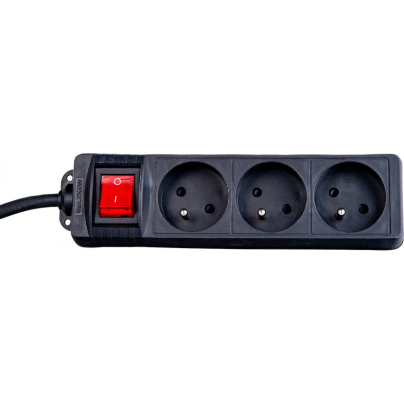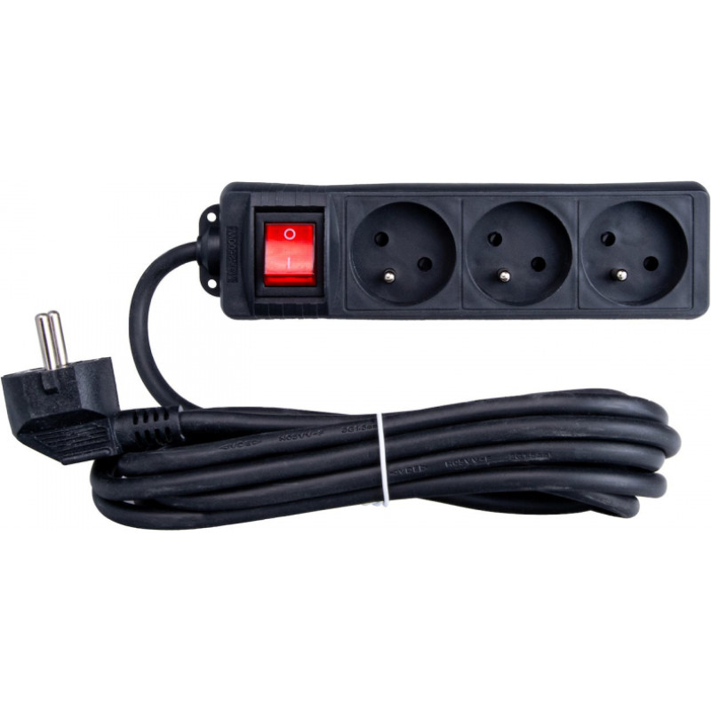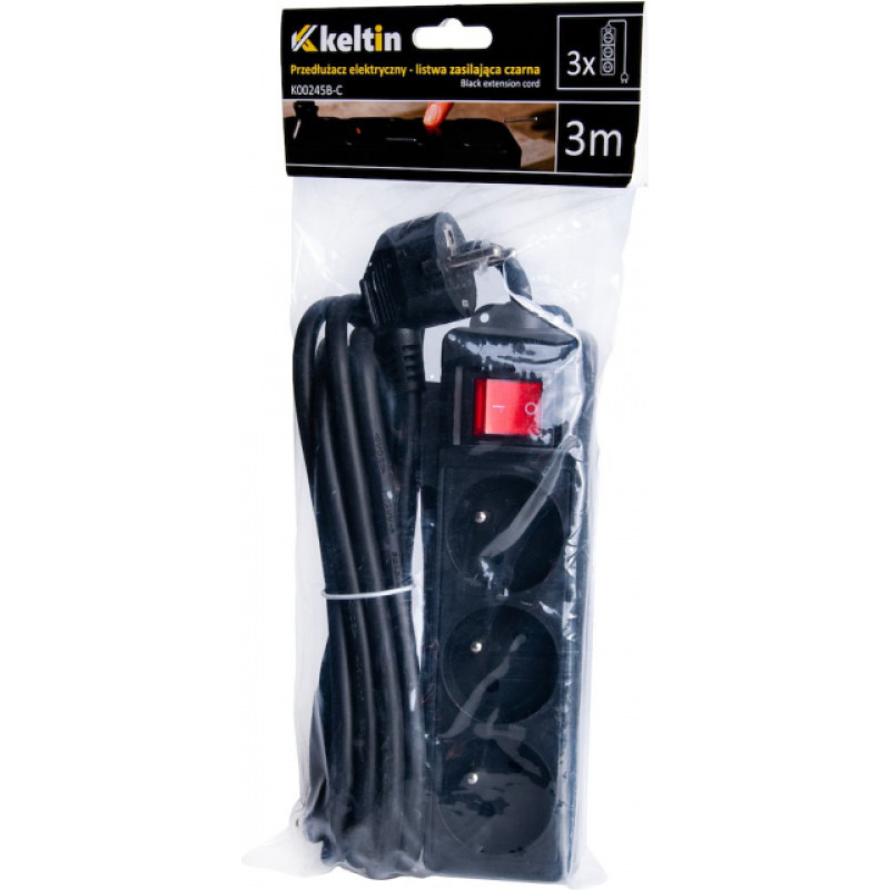 Geko Melna pagarinātāja vads ar slēdzi, Keltin, K00245B-C, 3 kontaktligzdas, 3m, ar zemējumu