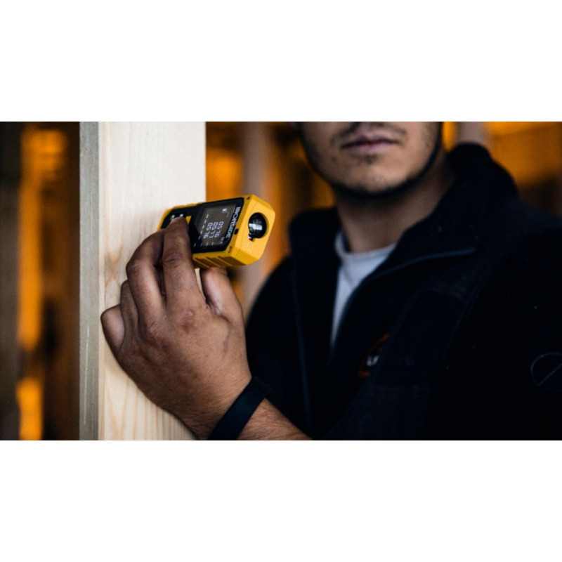 Kompakts un izturīgs attāluma mērītājs, kas mēra garumu līdz 40 m. Mēra un aprēķina attālumu, platību, apjomu, Pitagoru u.c. Atmiņas funkcija 20 mērījumiem. Notīrīt 2" ekrānu. Automātiski izslēdzas pēc 3 minūšu neaktivitātes. Komplektā ar tekstila pārsegu un 3xAAA baterijām.
