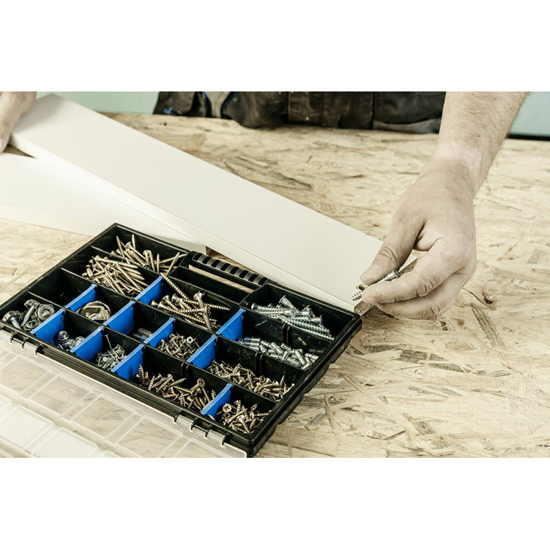 Universāls organizators ar regulējamiem nodalījumiem ērtai sīku detaļu un instrumentu uzglabāšanai. Izgatavots no augstas kvalitātes materiāliem, kas garantē produkta izturību un uzticamību.