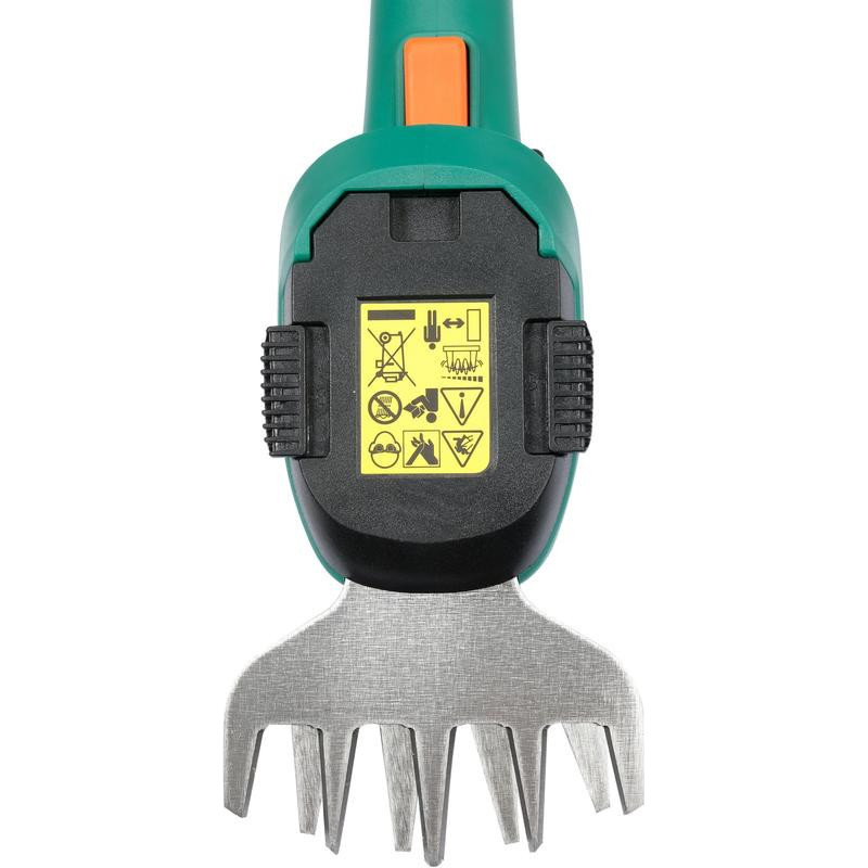 Ērtas, bezvadu zāles vai dzīvžoga šķēres. Griešanas uzgaļu maiņa neprasa instrumentu izmantošanu. Šķēres tiek darbinātas ar 3,6V 1500 mAh Li-Ion akumulatoru.