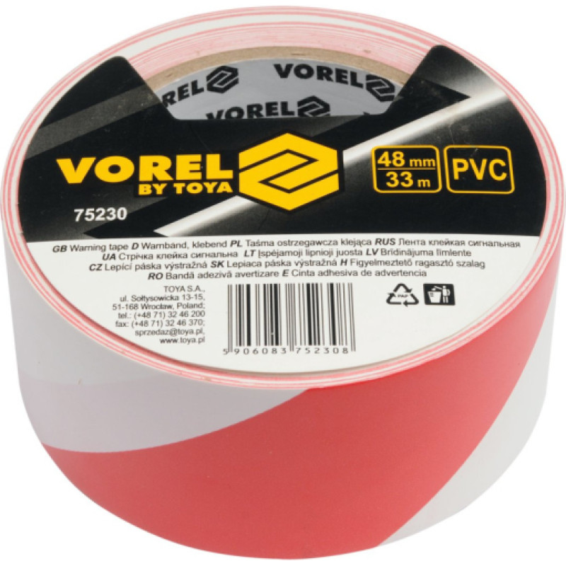 Vorel Brīdinājuma lente, VOREL, 75230, balta/sarkana, 48mm x 33m, PVC, pašlīmējoša