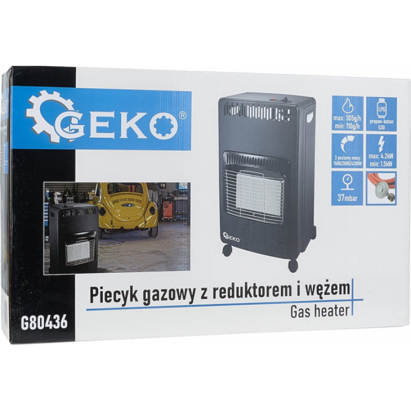 Gāzes sildītājs ar siltuma jaudu 4.2 kW ir efektīvs un daudzfunkcionāls apkures risinājums, ideāli piemērots lielāku telpu sildīšanai. Aprīkots ar keramikas sildīšanas elementu un trim siltuma iestatījumiem (1.5 kW, 2.8 kW un 4.2 kW), šis sildītājs ļauj lietotājiem pielāgot siltuma intensitāti atbilstoši pašreizējām vajadzībām, nodrošinot termālo komfortu aukstākajās dienās. Ierīce darbojas ar standarta 11 kg propāna/butāna gāzes balonu, un mazākus balonus var izmantot ar speciālu adapteri. Iepakojumā ir iekļauts regulators un šļūtene, kas ļauj nekavējoties uzstādīt un izmantot ierīci.