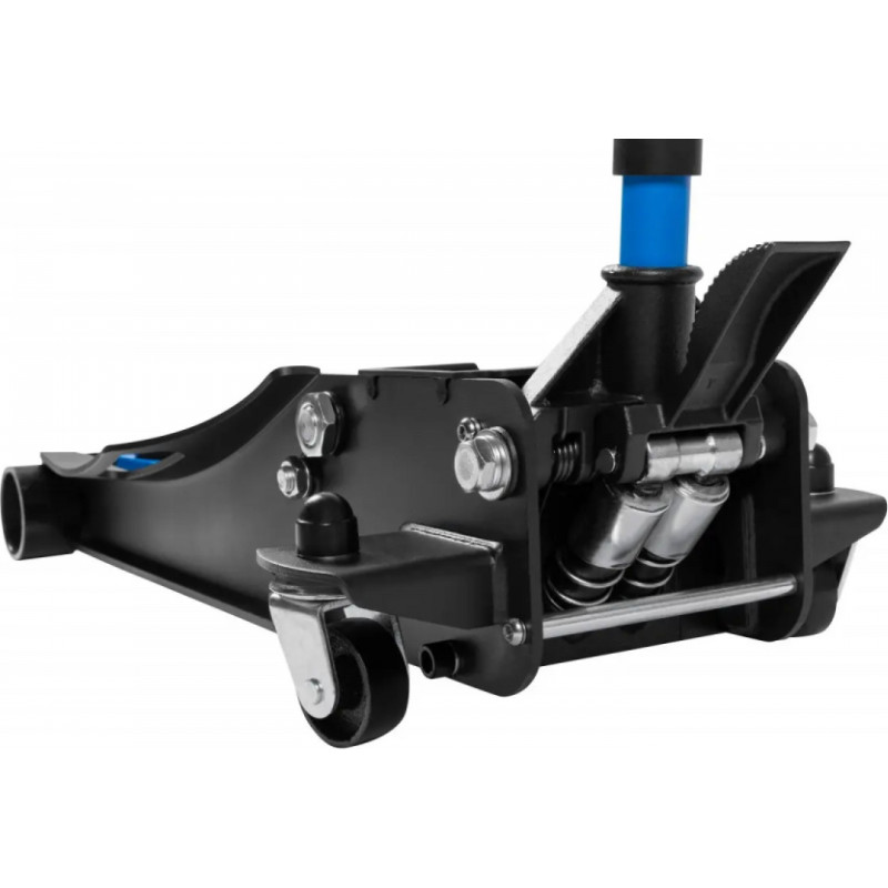 Papildus domkrats ir aprīkots ar kājas sviru ātrai pacelšanas sviras uzcelšanai. Šis automobiļu domkrats ir īpaši izstrādāts transportlīdzekļiem ar pazeminātu piekari – tas viegli piekļūst zem sliekšņiem, kuru augstums ir no 85 mm.