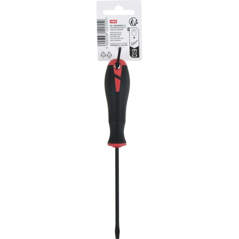 This 4 slotted screwdriver has a 100 mm long shaft and is made of high quality S2 steel. The magnetic tip speeds up the process of driving screws. The soft anti-slip handle provides a firm grip and the handle has an integrated suspension eye for easy storage.