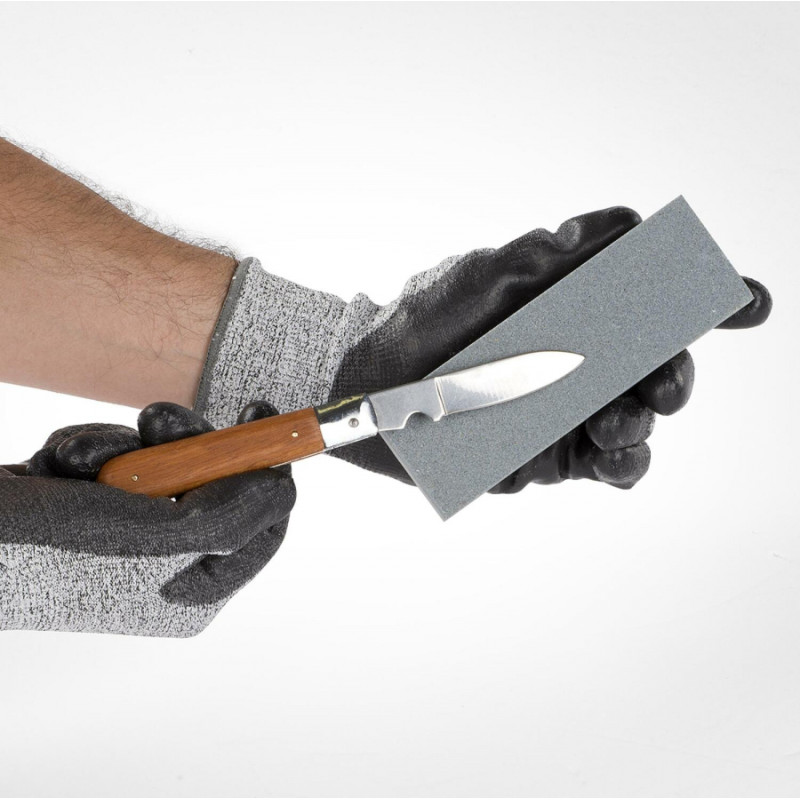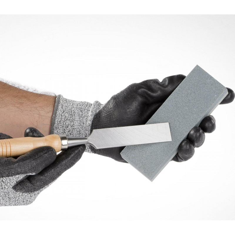 Asiniet savas šķēres, kalti, skrāpjus un zāģu asmeņus ar šo asināmo akmeni. Katrai pusei ir atšķirīga graudainība: smalka un vidēja - #150 un #240. Asināmais akmens ir 160 mm x 5 mm x 25 mm liels.