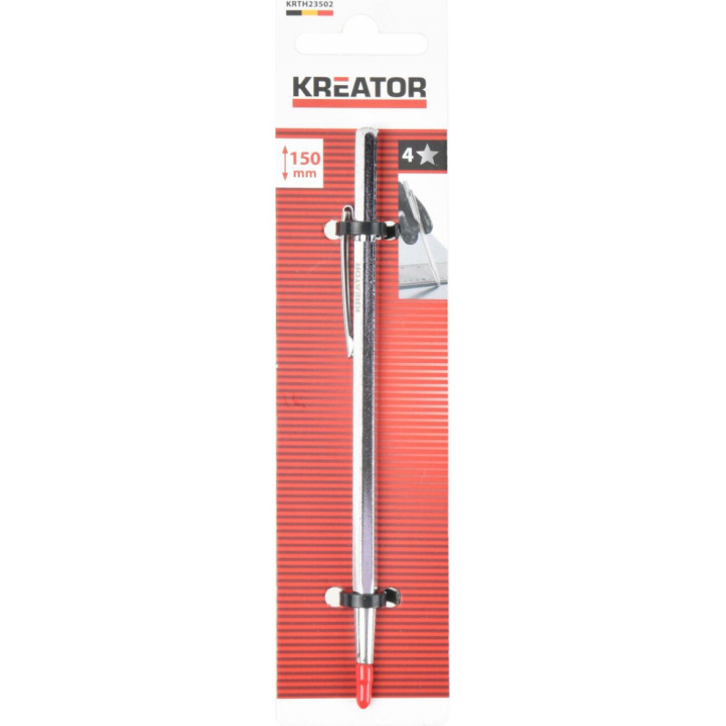 KREATOR simbolizācijas rīks G17356 ir paredzēts dažādu materiālu, piemēram, koks, metāls, akmens un alumīnijs, marķēšanai. Tērauda rakstītājs ar cietmetāla galu nodrošina izturību un ilgstošu kalpošanu. Tas ir aprīkots ar praktisku klipsi, līdzīgu lodīšu pildspalvai, kas ļauj to viegli piestiprināt pie krūšu kabatas, darba jostas vai bikšu. Tādējādi tas vienmēr ir sasniedzamā attālumā.
