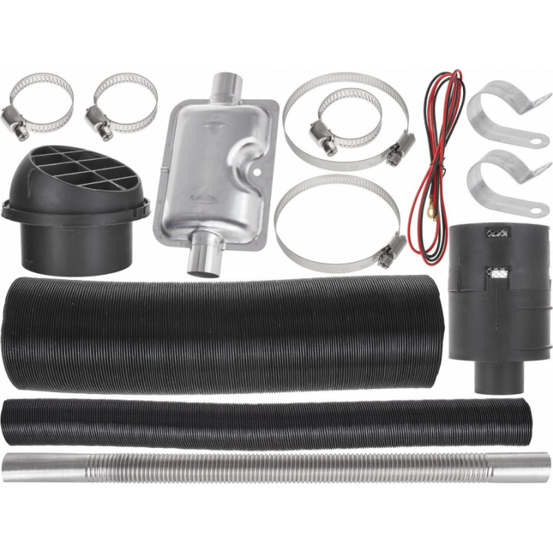 - Visi nepieciešamie montāžas piederumi, tostarp šļūtenes, skavas un stiprinājumi