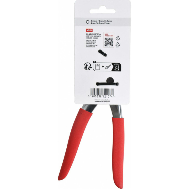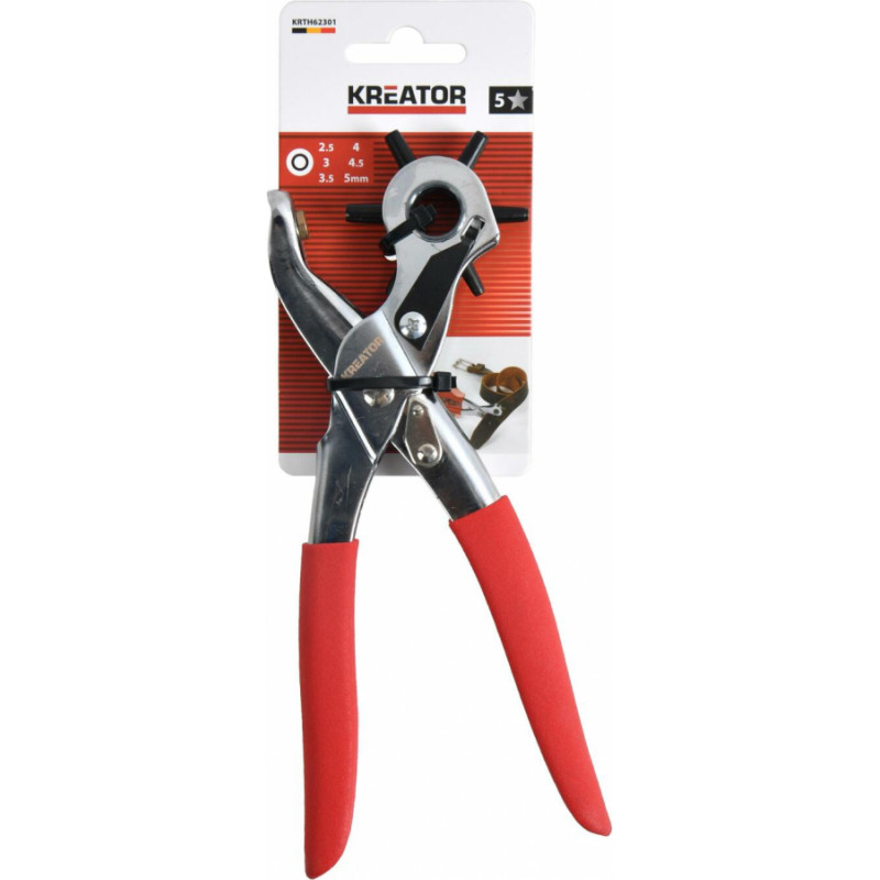 KREATOR KRTH62301 augstas kvalitātes caurumošanas knaibles ir ideāli piemērotas caurumu izveidošanai dažādos materiālos, piemēram, ādā, plastikā, gumijā, audumos un kartonā. Nepieciešams papildu caurums jostas siksnā? Nav problēmu! Šīs knaibles ir aprīkotas ar 6 dobu cilindru dažādās izmēros. Ritenis rotē, kas ļauj izvēlēties pareizo izmēru no Ø 2,5 līdz 5 mm. Mīkstie neslīdošie rokturi nodrošina stabilu saķeri.