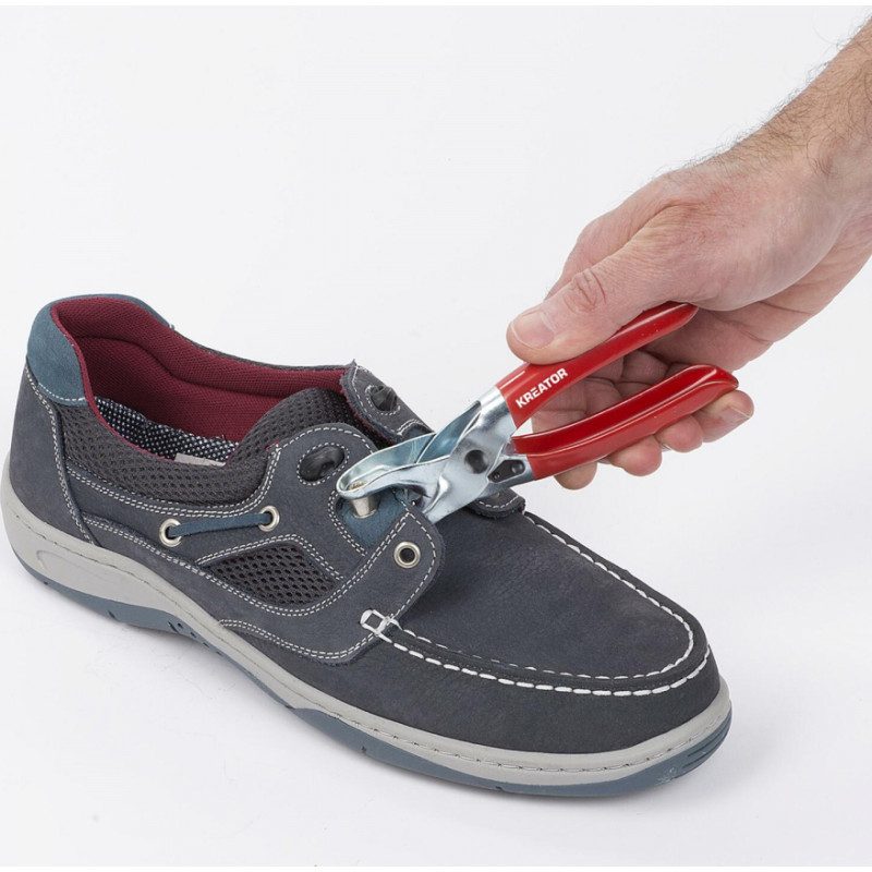 These Kreator grommet pliers can be used to attach eyelets to textiles and other thin materials, with a maximum diameter of 4,5 mm. The soft anti-slip handles provide a firm grip.