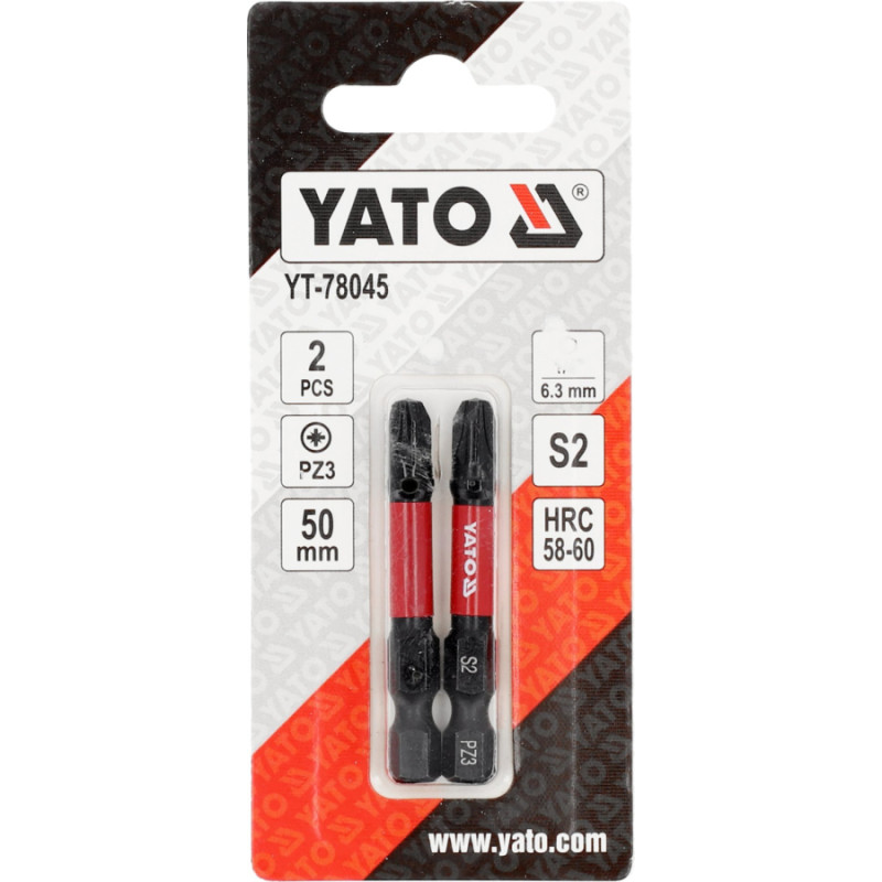 IMPACT SCREWDRIVER BIT 1/4 50MM PZ3 2 PCS. MATERIAL : S2 STEEL; PHOSPHATED, HRC: 58-60Index: YT-78045