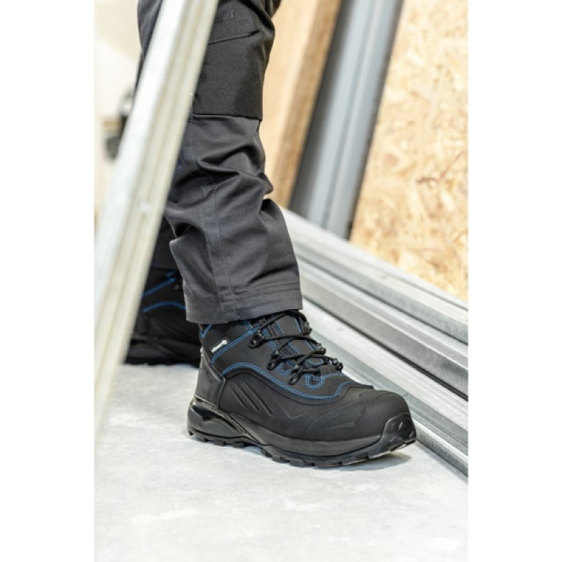 GREVEN drošības zābaki apvieno augstas kvalitātes izstrādi ar funkcionalitāti, kas nepieciešama daudzās darba vidēs. Tie atbilst drošības klasei S3, saskaņā ar ISO 20345:2011 standartu, nodrošinot kāju aizsardzību grūtos apstākļos, vienlaikus garantējot komfortu. Zābaku augšdaļa ir izgatavota no nubuka ādas, kas ir pazīstama ar savu izturību un estētisko izskatu. Nubuka āda ir patīkama pieskārienam, bet tajā pašā laikā izturīga pret bojājumiem, kas ir svarīgi, ja apavi tiek pakļauti dažādiem faktoriem. Zābaku iekšpuse ir apdarināta ar sietu audumu, kas nodrošina pareizu gaisa cirkulāciju. Zābaku aizmugure ir pastiprināta ar Oksforda audumu, kas piešķir papildu izturību šai svarīgajai apavu daļai. Iekšzole ir izgatavota no HI-POLY poliuretāna putām, kas palīdz samazināt kāju nogurumu ilgstoši valkājot zābakus. GREVEN zābaki ir aprīkoti ar kompozīta purngalu, kas nodrošina pirkstu aizsardzību pret triecieniem līdz 200 J. Papildus Kevlar anti-punkcijas iekšzole nodrošina aizsardzību pret asiem objektiem. GREVEN drošības zābaki apvieno drošību un funkcionalitāti ar komfortu un stilu, atbildot uz profesionāļu vajadzībām, kuri meklē uzticamus apavus darbam.