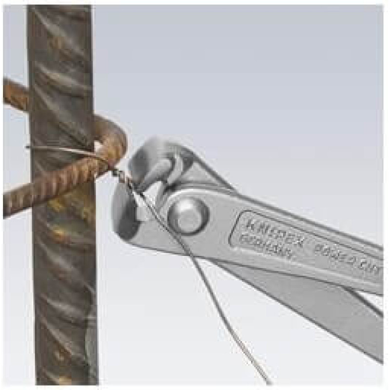 Piemērotas betona armēšanas stieples sasiešanai. Stieple tiek savīta un nogriezta ar to pašu instrumentu. Minimāla slodze, pat arī griežot biezu stiepli. Īpaši plānas knaibles, viegli strādāt grūti pieejamās vietās. Griešanas malas papildus rūdītas – cietība ap 61 HRC. Niķelētas.