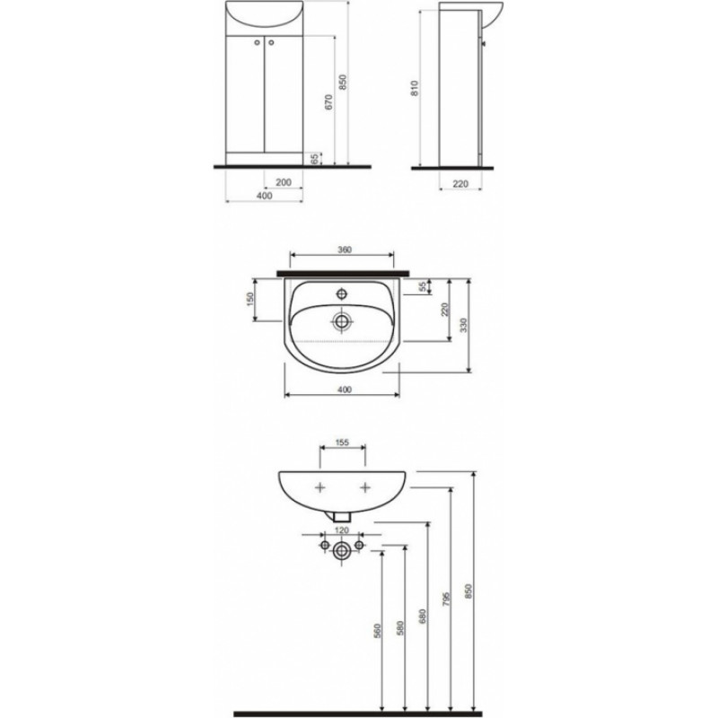 • Izlietnes skapītis: 39 x 81 x 22 cm