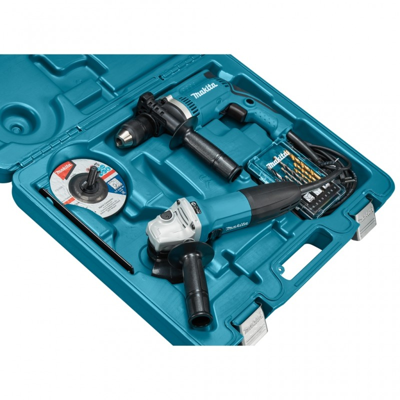 Komplektācija: trieciena urbjmašīna HP1631, leņķa slīpmašīna GA5030R, urbju komplekts, 10 gab. slīpēšanas disku, koferis.