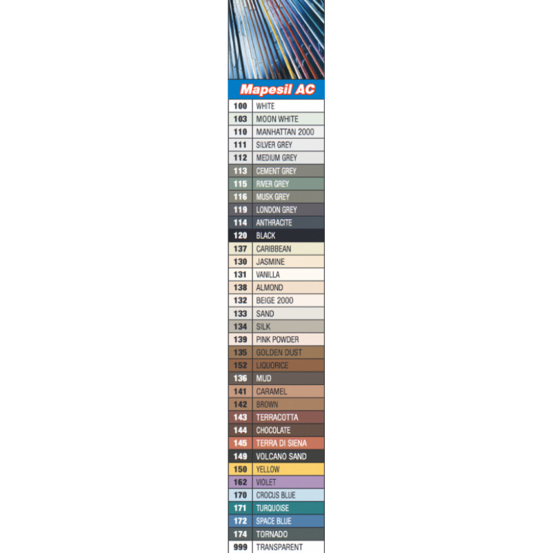 Tehniskais apraksts Mapesil AC ir krāsains vai bezkrāsains vienkomponenta, šķīdinātāju nesaturošs silikona sastāvs. Mapesil AC ir elastīga, tiksotropi pasta, ko izmanto vertikālo un horizontālo šuvju aizpildei. Tā cietēšana notiek atmosfēras mitruma un apkārtējās vides temperatūras ietekmes rezultātā.