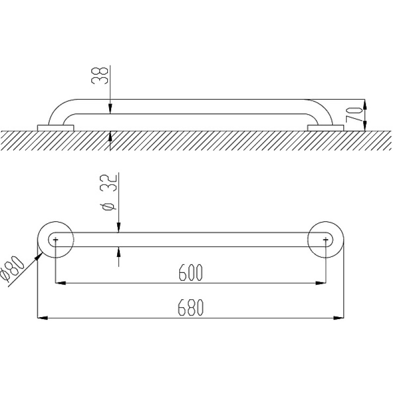 Uz sienas piestiprināms taisns rokturis pacelšanas. Piemērots lietošanai vannas istabās, WC un dušas telpās.
