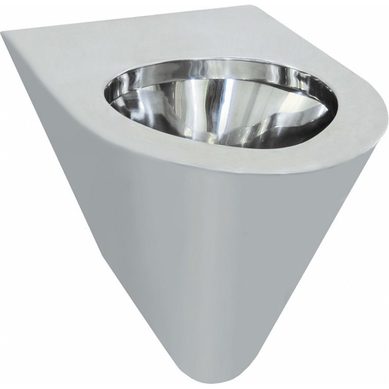 Nerūsējošā tērauda pods, stiprināms pie sienas. Ūdens pievada caurules izmērs Ø 60 mm, izplūdes caurules izmērs - Ø 100 mm. Saderīgs ar manuālajām vai automātiskajām skalošanas kastēm.