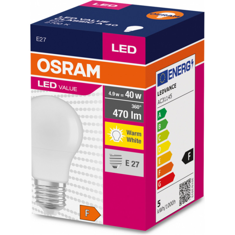 Osram Spuldze OSRAM LED VALUE CLASSIC A 40, 6W, 470LM, 2700K, E27 - gab