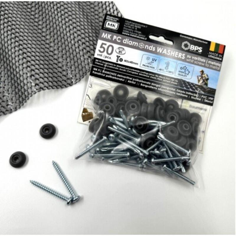 Stiprinājuma skrūves metālam ar starpliku (pelēku) MK PC DIAMONDS 5x40mm, 50 gab/iepak. / gab