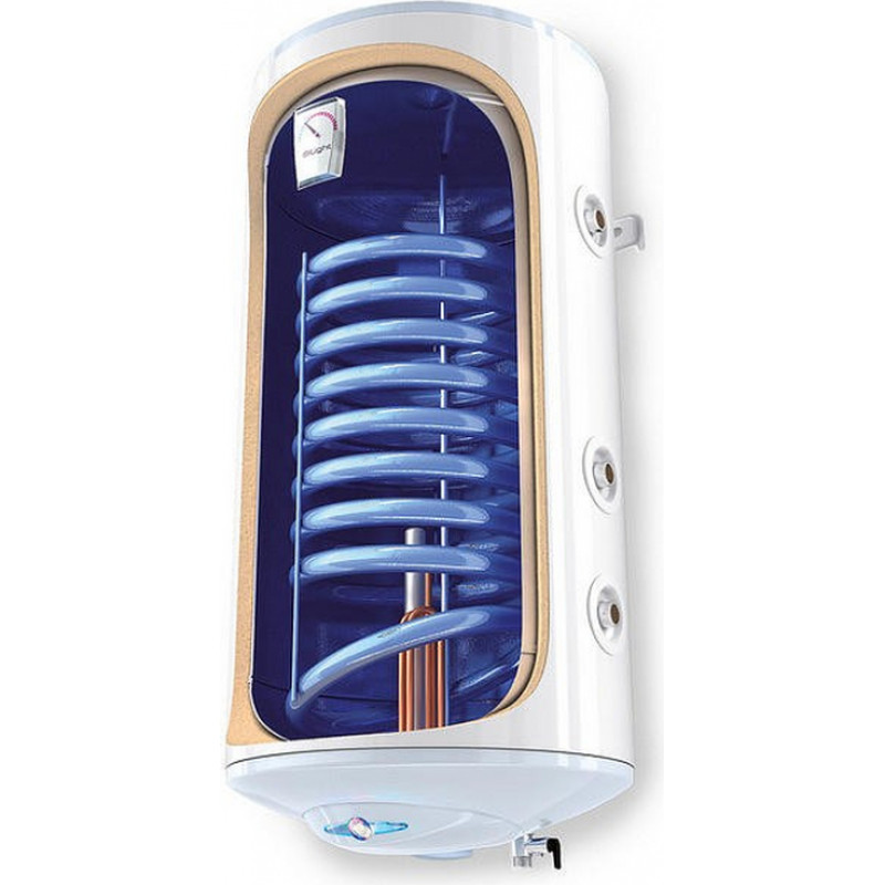 • Iebūvēts augstas efektivitātes siltummainis / papildu jaudas serpentīns / ar integrētu TURBOLATOR, patentēts risinājums ātrai ūdens sildīšanai, izmantojot enerģiju no alternatīviem avotiem