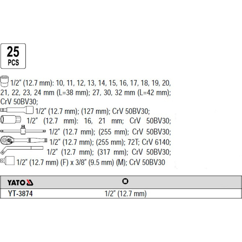 Yato Instrumentu komplekts 1/2'' (25gab.) YT-38741 YATO